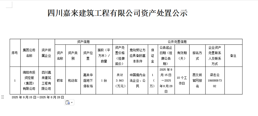 四川嘉来建筑工程有限公司资产处置公示