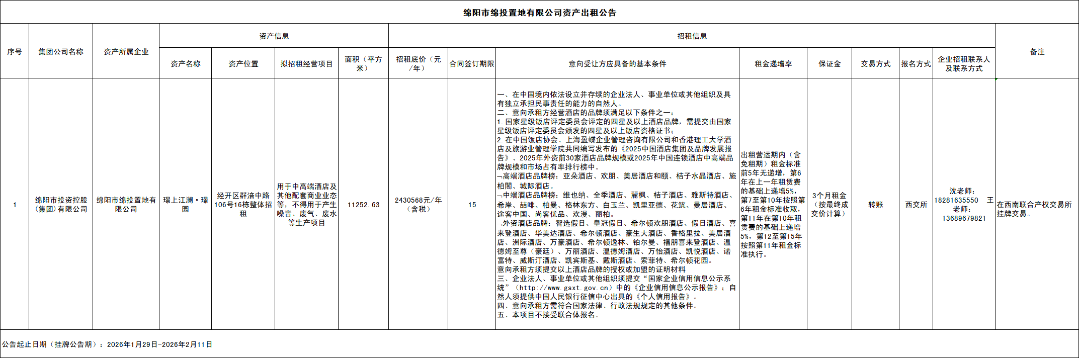 绵阳市william威廉英国官网置地有限公司资产出租公告
