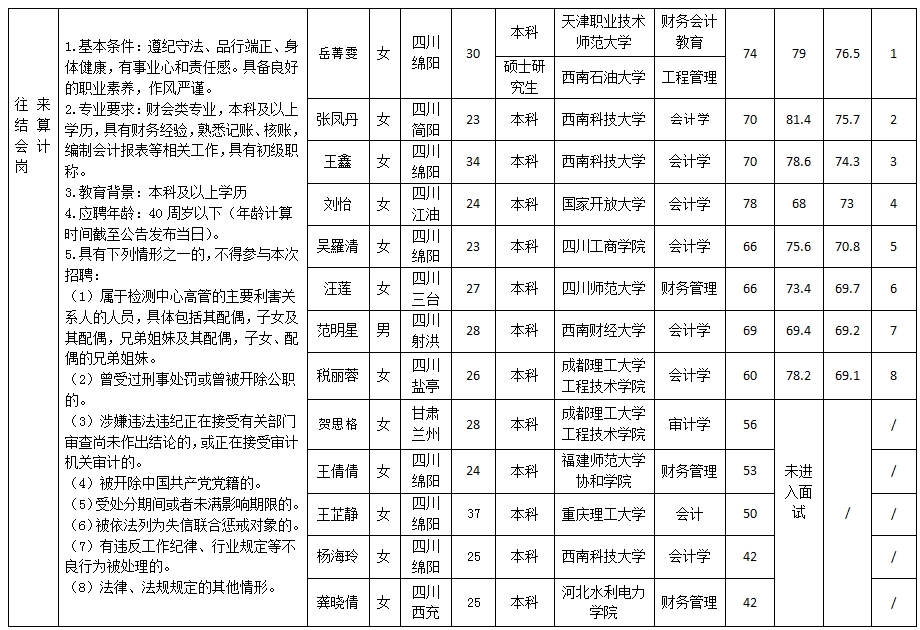 根据绵阳市建设工程质量检测中心有限责任公司发布的招聘公告及招聘相关规定,现将笔试、面试成绩予以公示。