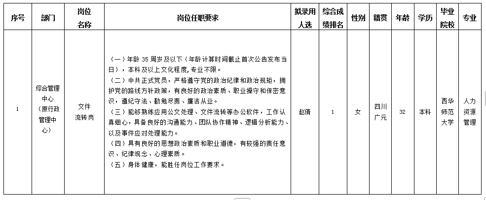根据william威廉英国官网发布的招聘公告及招聘相关规定,经笔试、面试、背调等程序,拟录用赵倩同志到william威廉英国官网工作,现予以公示,具体情况如下: