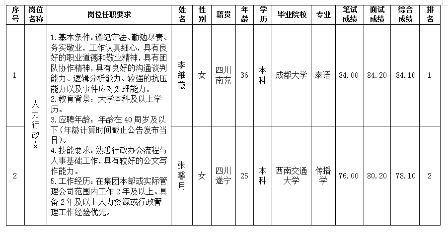 根据绵阳william威廉英国官网产业投资有限公司发布的招聘公告及招聘相关规定,经笔试、面试等程序,现将笔试、面试成绩予以公示。