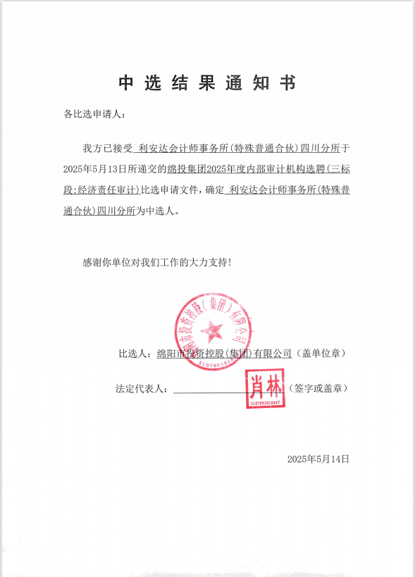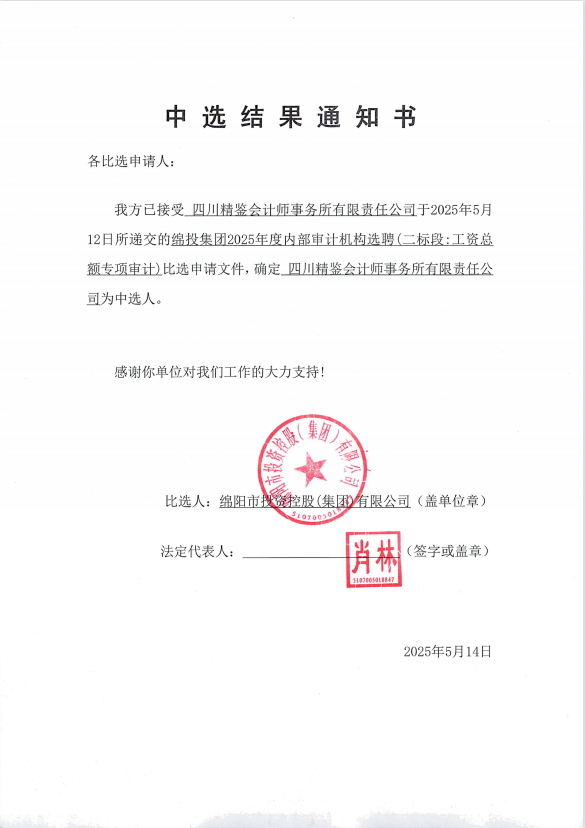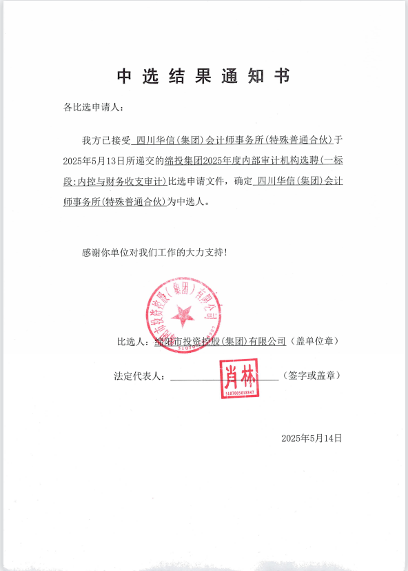 william威廉英国官网集团2025年度内部审计机构选聘中选结果通知书