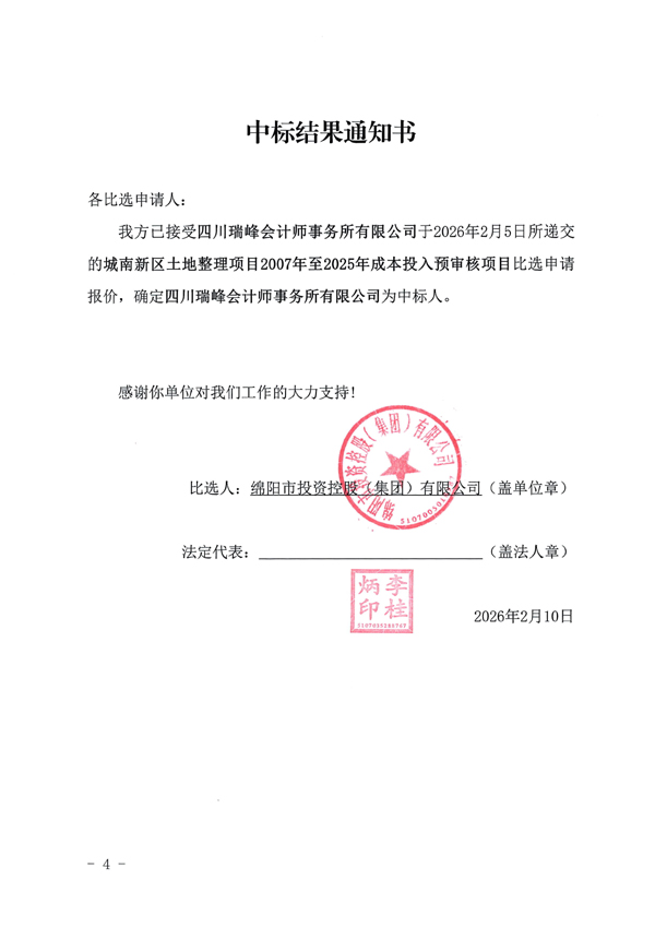 城南新区土地整理项目2007年至2025年成本投入预审核项目中标结果通知
