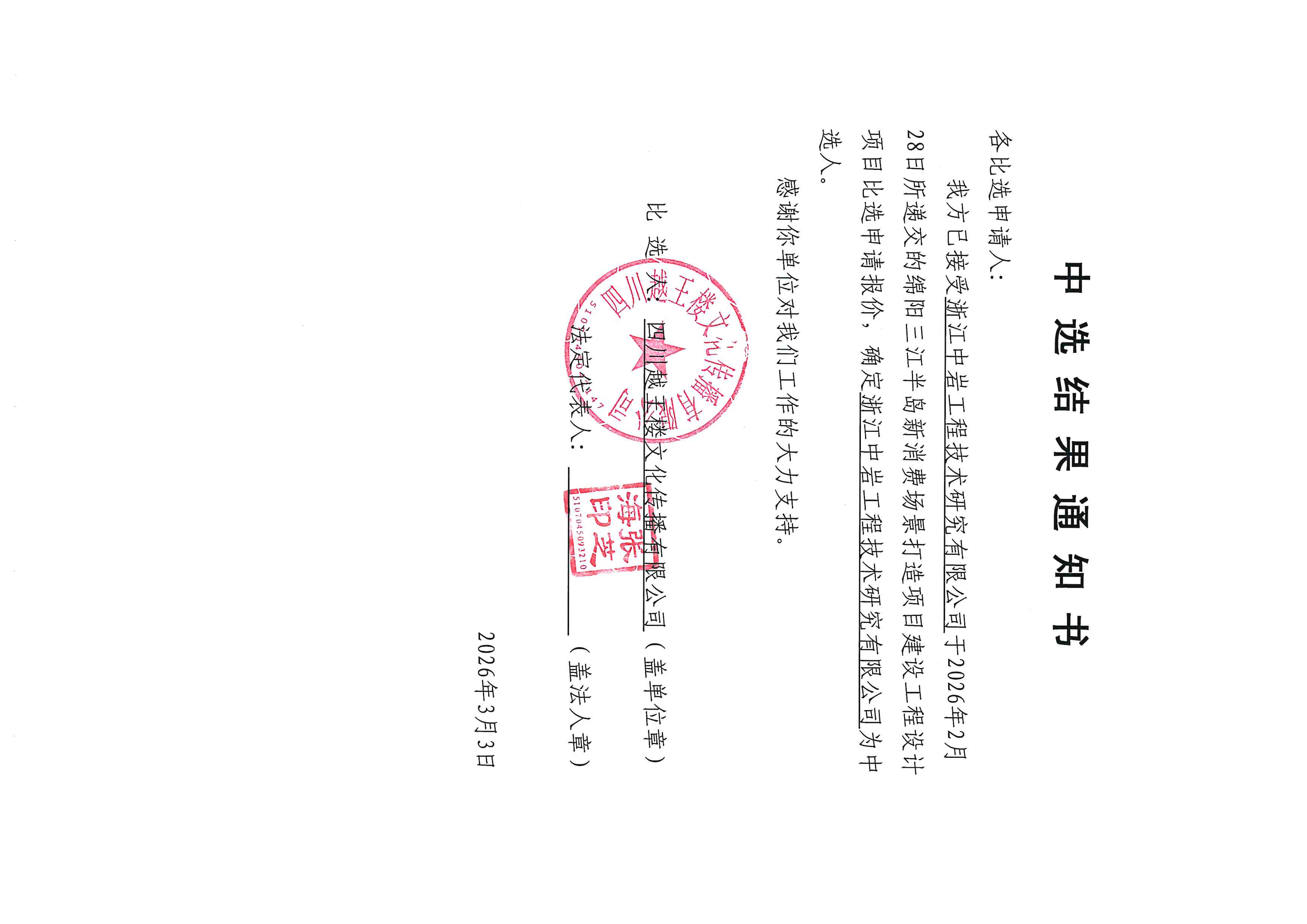 绵阳三江半岛新消费场景打造项目建设工程设计中选结果通知